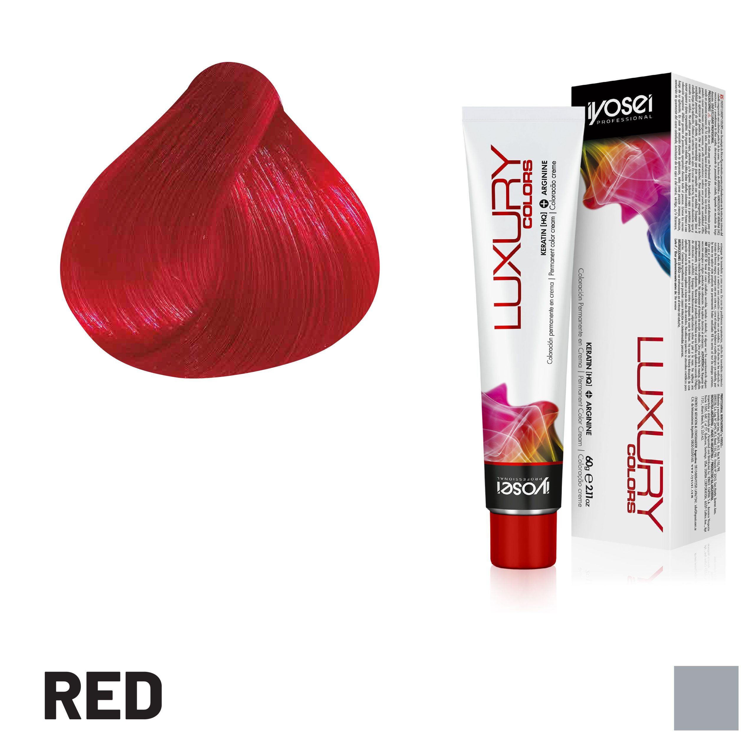 LUXURY COLORS permanent color cream (in 82 shades) contains KERATIN and ARGININE, it is developed with Micro-pigmentation technology, it penetrates deeply into the internal structure of the hair, guaranteeing total coverage of gray hair. Its ARGININE and KERATIN active ingredients restore and condition the hair fiber, reducing hair porosity and thus achieving long-lasting results.